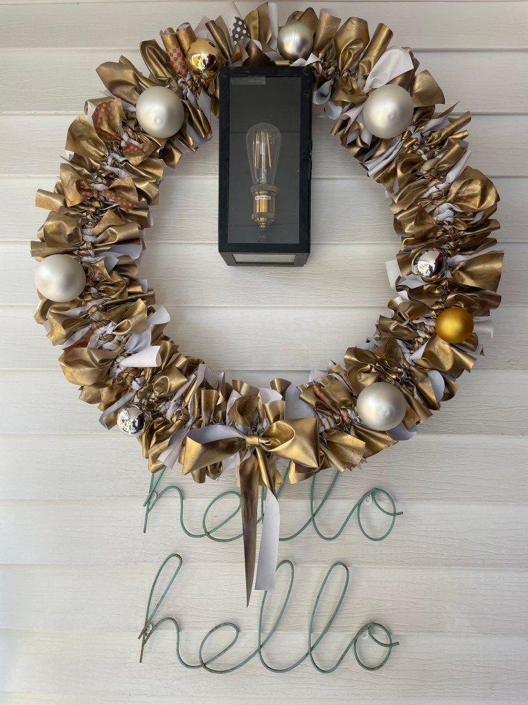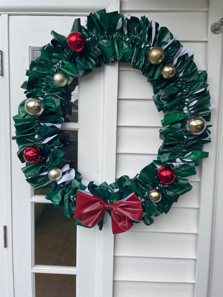 These are designed to last a few holiday seasons outside, but you can make your own indoor version – you just tie a lot of knots around a round thing!