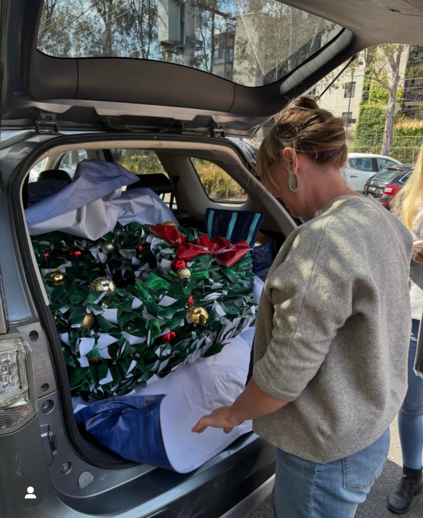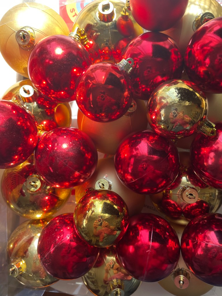 4. Decorate! I went to my local Vinnies and Sacred Heart op shops and bought up all the red and gold baubles. Then I used cable ties to tie them on and added a bow for good measure.