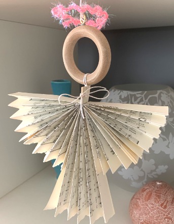 What else could you use, do you think? Folded kids art for the body and wings? Bottle tops for the head and halo? Leave your ideas, questions and comments below.